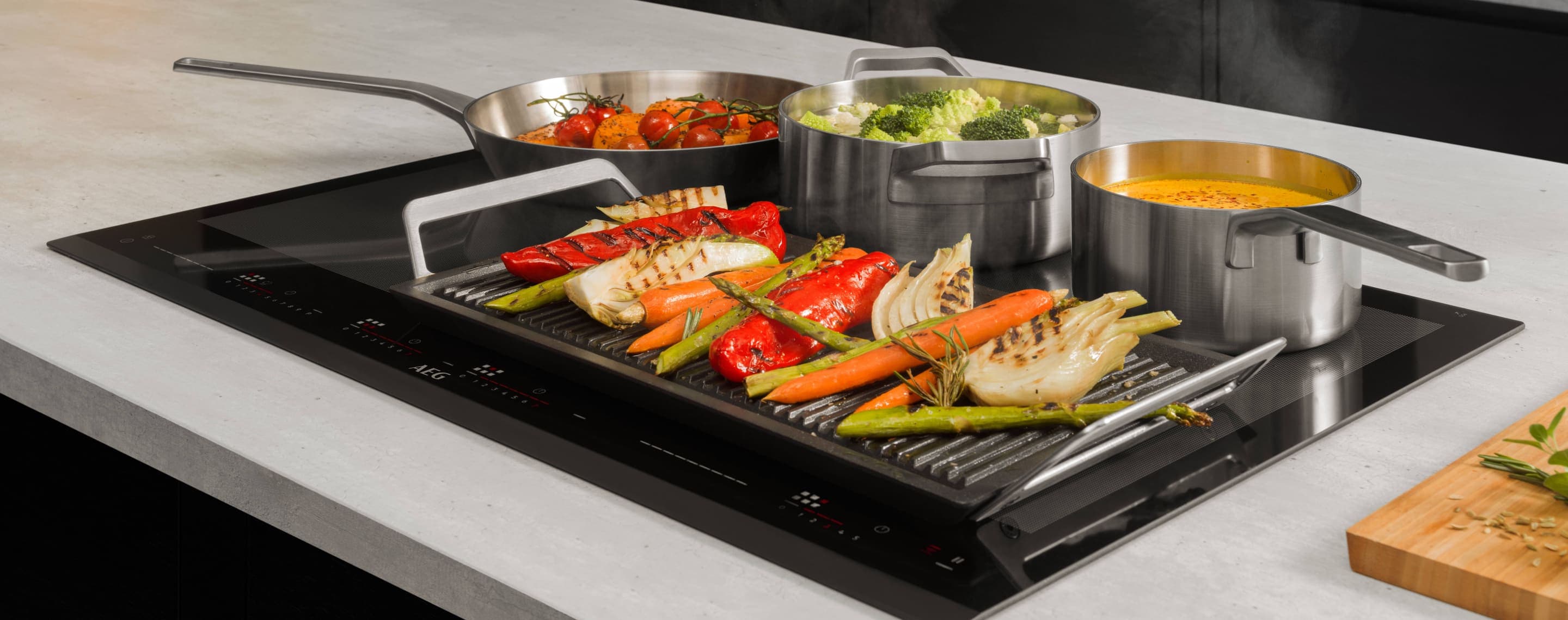 Indukcja – płyty indukcyjne szybko się nagrzewają i są niezwykle responsywne. Powierzchnia wokół garnków na płycie indukcyjnej pozostaje chłodna, dzięki czemu jest bardzo bezpieczna.
