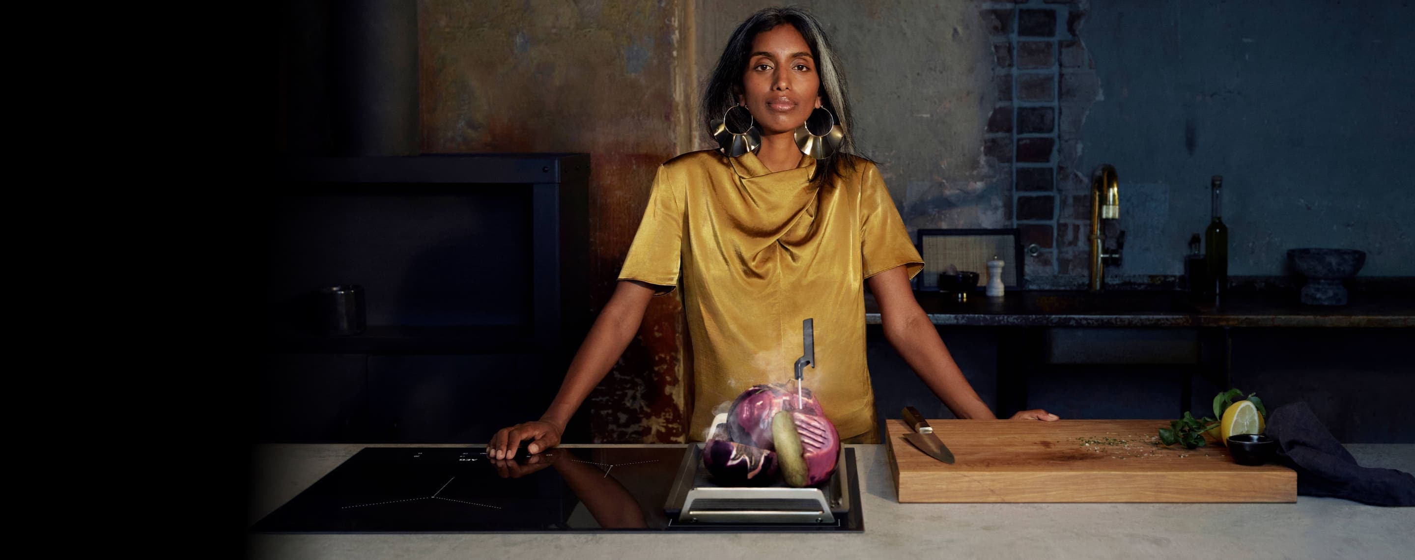 Dodaj odrobinę eleganckiego piękna do swojej kuchni. Całkowicie zlicowany z powierzchnią roboczą, Pure pozostaje uśpiony, dopóki nie ożywi go Twój dotyk. Nowoczesne, czerwone elementy sterujące płytą LED i pola grzejne są widoczne tylko wtedy, gdy ich potrzebujesz. Dzięki temu Twój blat ma zawsze stylowe i subtelne wykończenie.