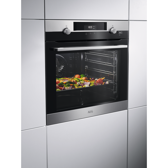 Piekarnik z funkcją PlusSteam, idealną do pieczenia chleba i ciast, z termosondą, systemem pieczenia konwekcyjnego Hot Air, opcjami czyszczenia katalitycznego oraz Soft Closing, stal szlachetna.