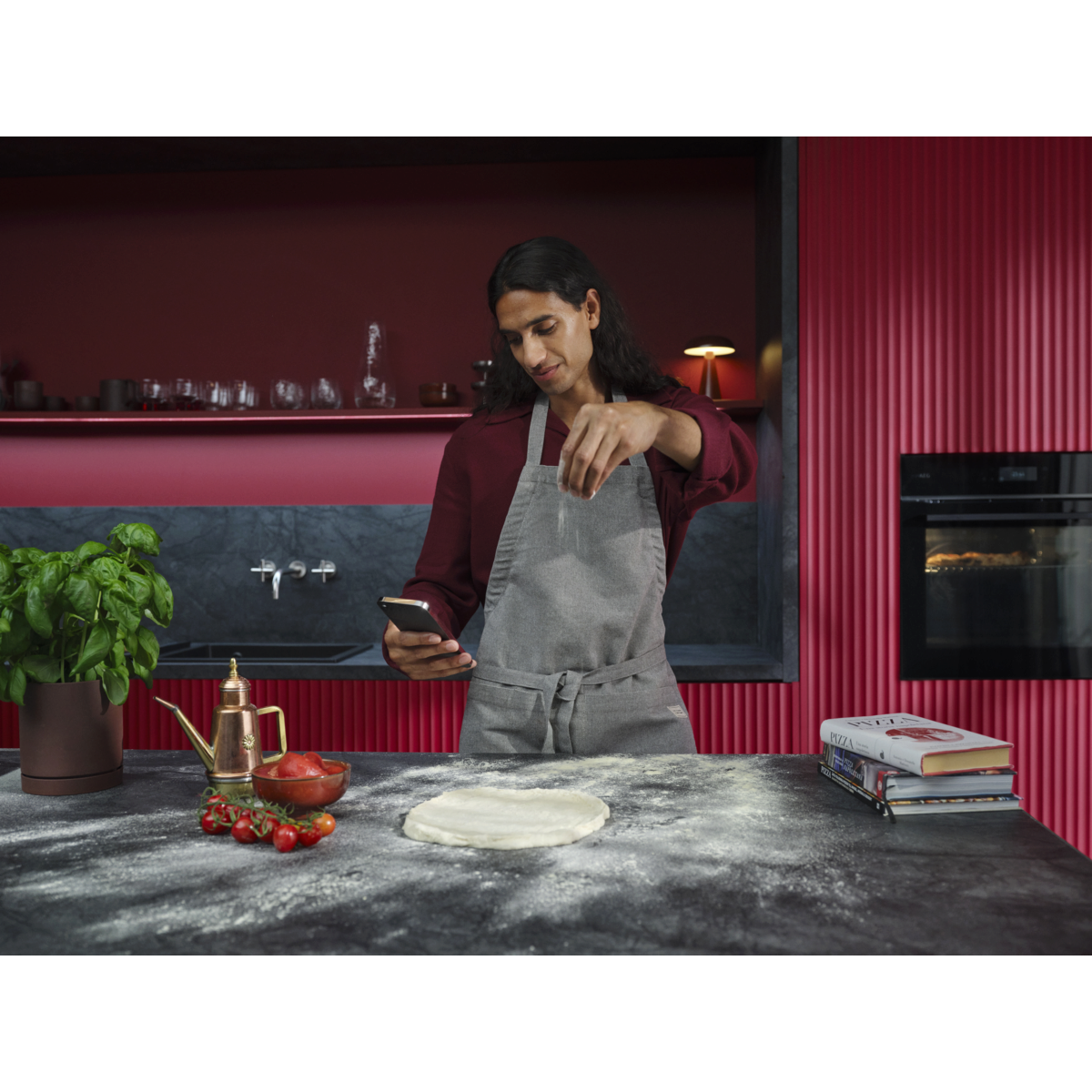 W aplikacji AEG znajdziesz dokładne instrukcje, jak przygotować klasyczne ciasto do pizzy godnej najlepszych pizzerii, a także przepisy na sos pomidorowy oraz wiele inspiracji dla wielbicieli pizzy.