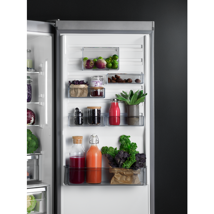 Lodówka z dolnym zamrażalnikiem MultiSpace 8000 CustomFlex z technologią TwinTech No Frost, wyświetlaczem LED i szufladą ExtraZone.