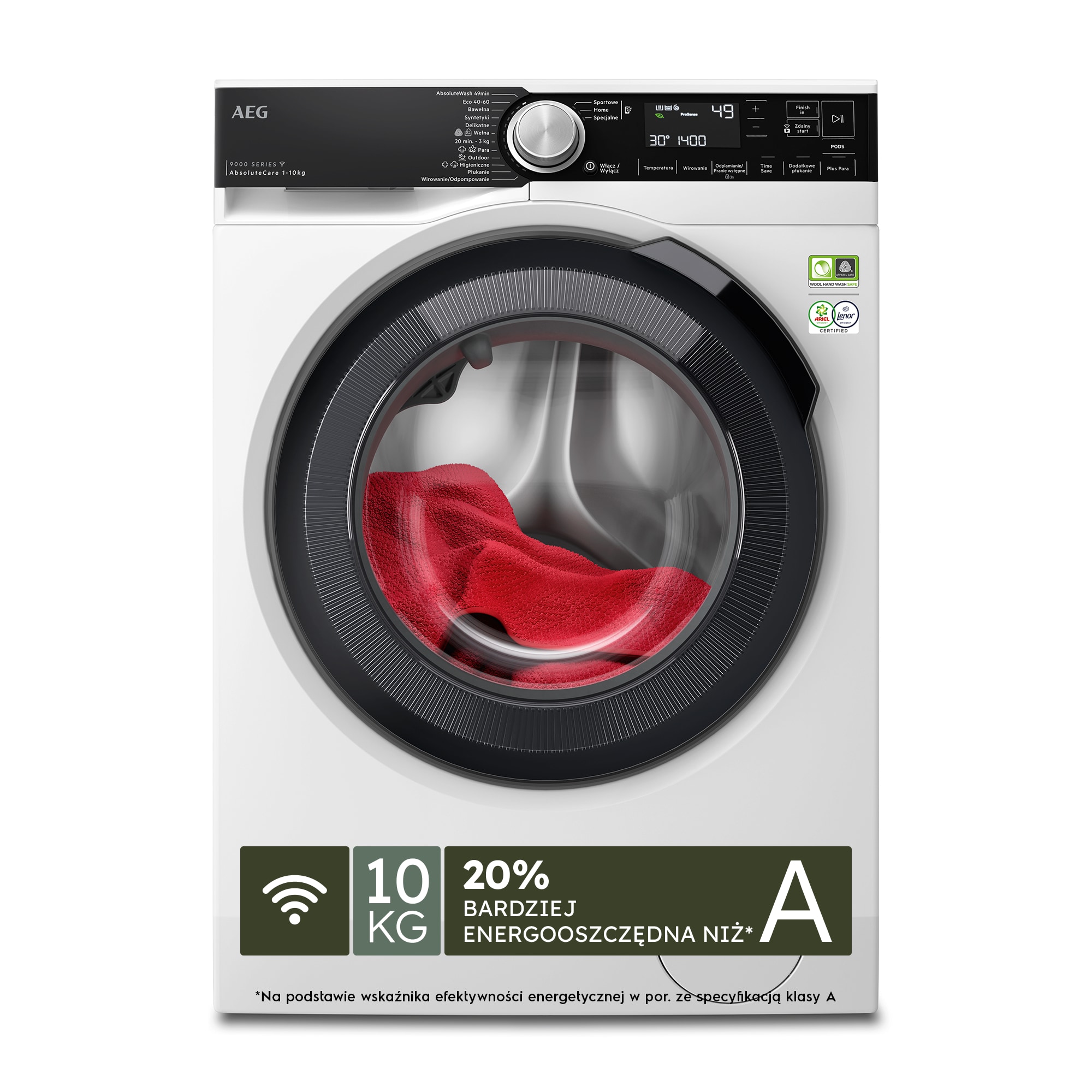Pralka ładowana od frontu AbsoluteCare® PowerCare z programem AbsoluteWash 49 min i opcją zdalnego sterowania za pomocą aplikacji AEG, pojemność 10 kg.