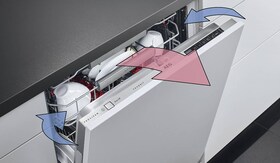 Zmywarka do zabudowy QuickSelect z systemem SatelliteClean, który zapewnia doskonałe efekty zmywania, uchwytami SoftGrip i wspornikami SoftSpikes, zapewniającymi skuteczną ochronę delikatnym szklanym naczyniom, technologią naturalnego suszenia AirDry i wyświetlaczem Beam on floor.