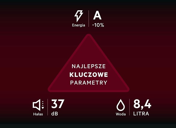 *Na podstawie niezależnego testu przeprowadzonego przez zewnętrzny niemiecki instytut: tabletki detergentu, cykl 90 min, naczynie z resztkami lasagne.